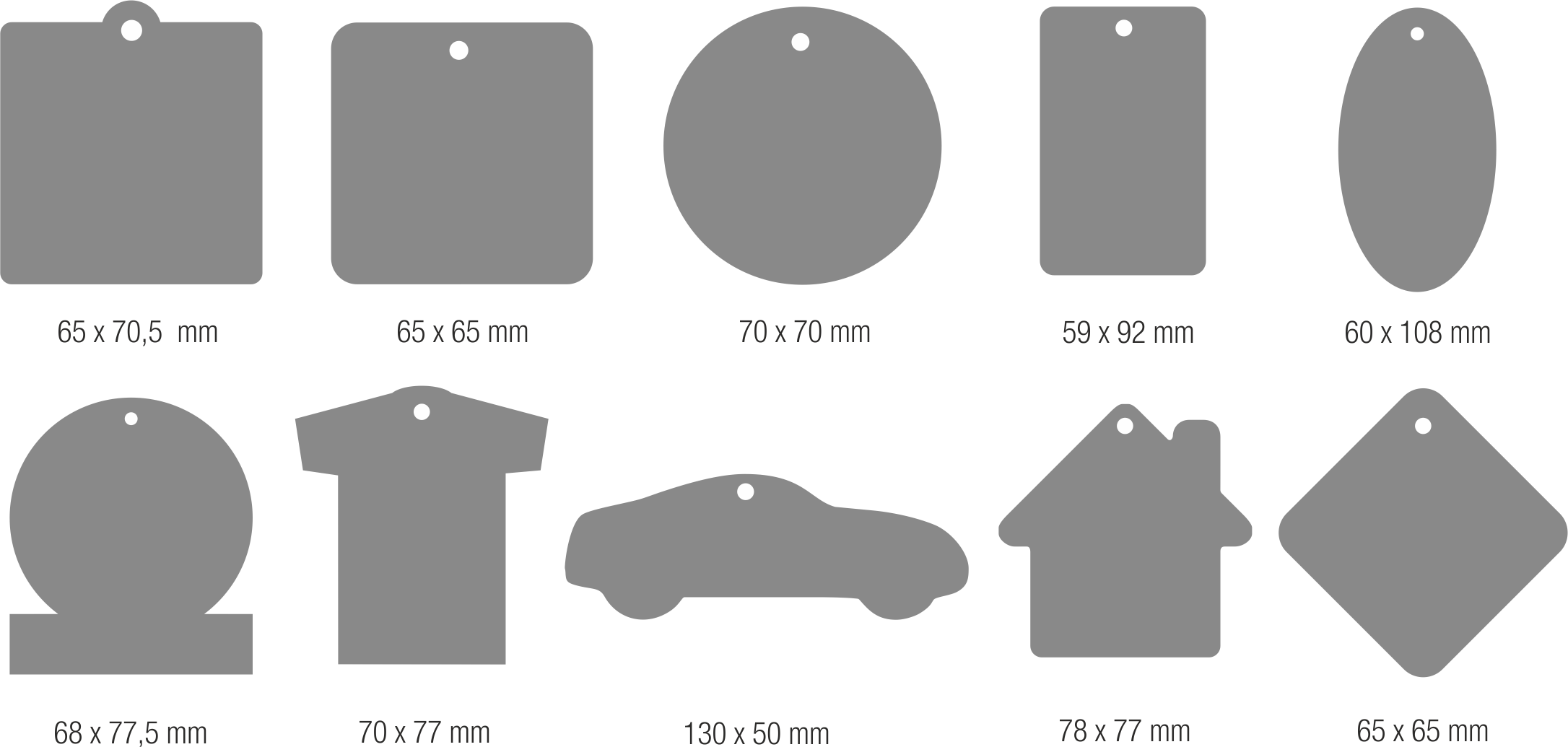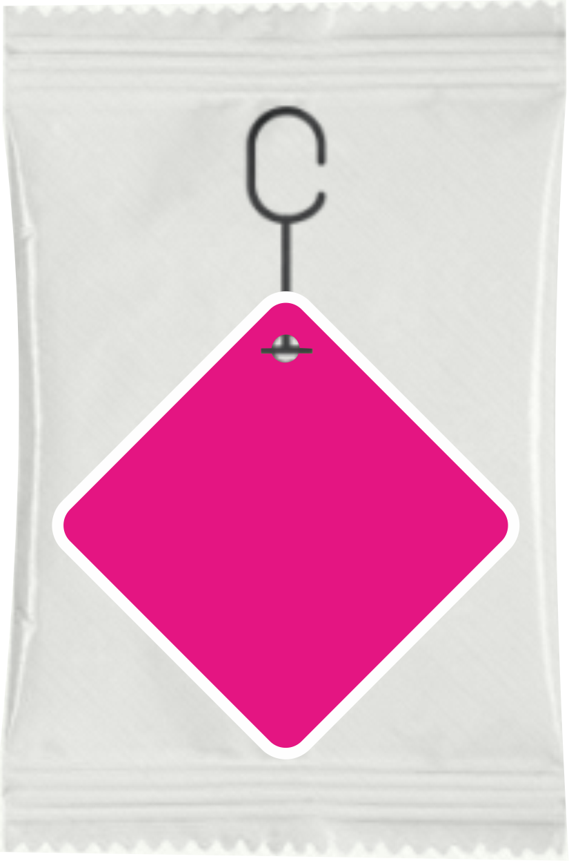 Osvežilci so zapakirani v neprodušno plastično vrečko in opremljeni s plastično kljukico za obešanje. Kot dodatno ponudbo lahko ponudimo tudi osvežilec zapakiran v vrečko, ki je vpeta v potiskan kartonček.